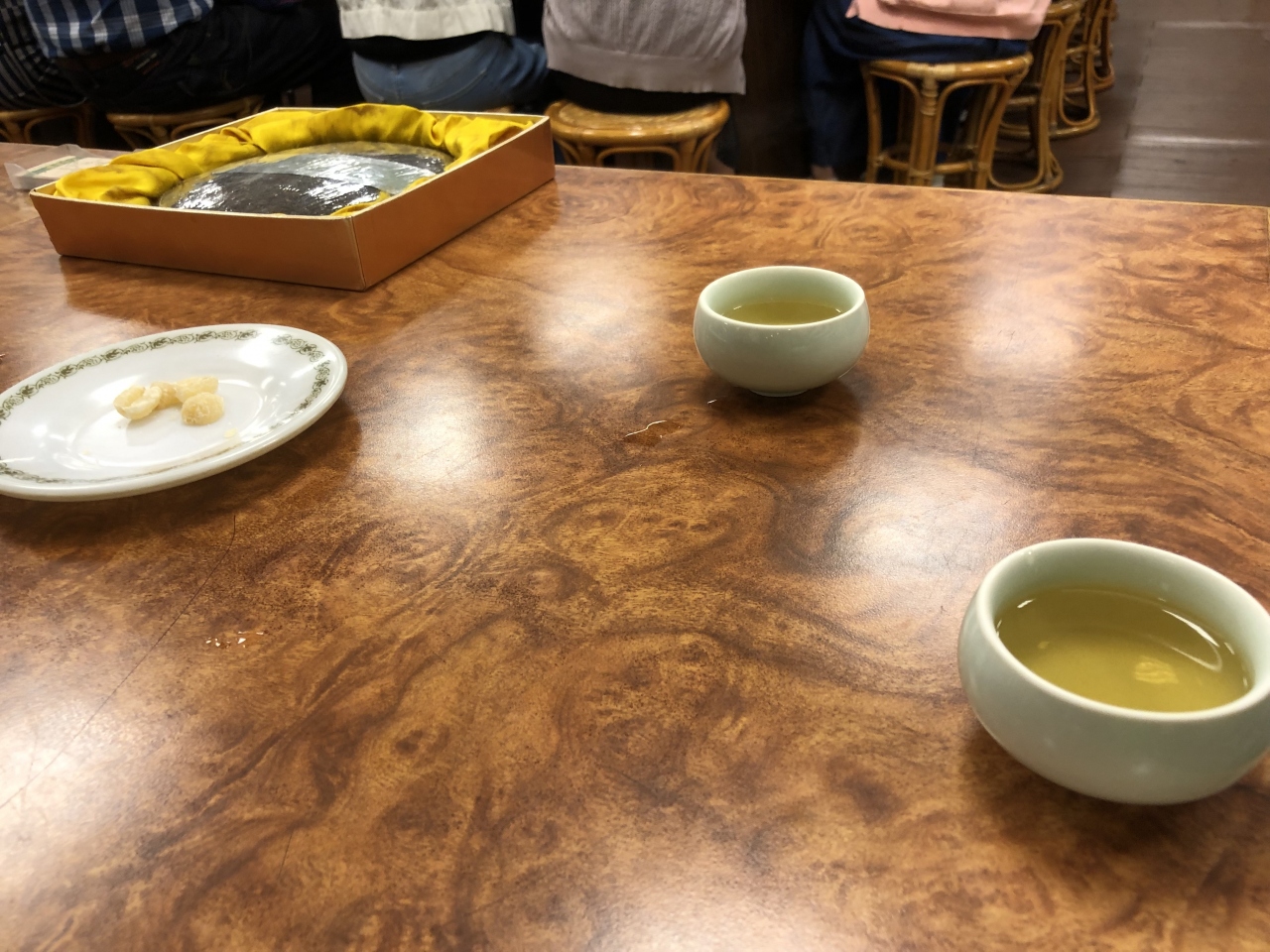 色々なお茶の飲み比べ、おつまみの茶菓子がほんの少しついてきます。
