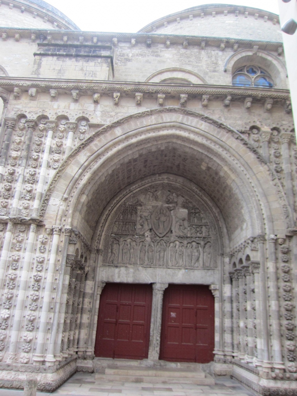 カオールにある一番大きな教会です。駅からはちょっと距離がありました。門は3ヶ所ありました。そのうちの一つの門の近くにホタテ貝がありました。そこのタンパンには栄光のキリストの彫刻がありました。教会の中に入れます。