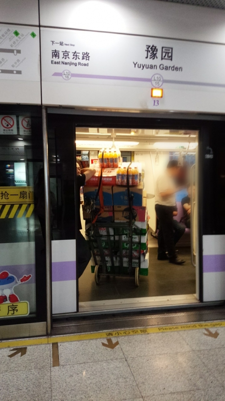 改札を通る前に、荷物チェックがあります。