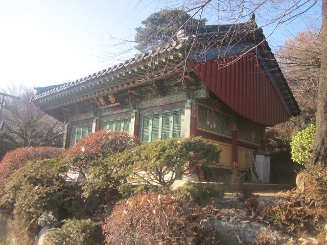 韓国仏教の曹溪宗に属するお寺で、その歴史は新羅時代の8世紀末に遡るとされる、創建1200余年を誇る韓国を代表する名刹の一つです。現在みられる建物の多くは20世紀以降の再建建築ですが、本堂に相当する大雄殿や、大きな弥勒大仏など境内も広々として見所が満載のお寺です。江南地区にあるお寺なので、高台に登ると、お寺の建造物の背後に江南のビル群が望めて、これがまたこの地区にあるお寺らしい風景を醸し出していて素敵でした。