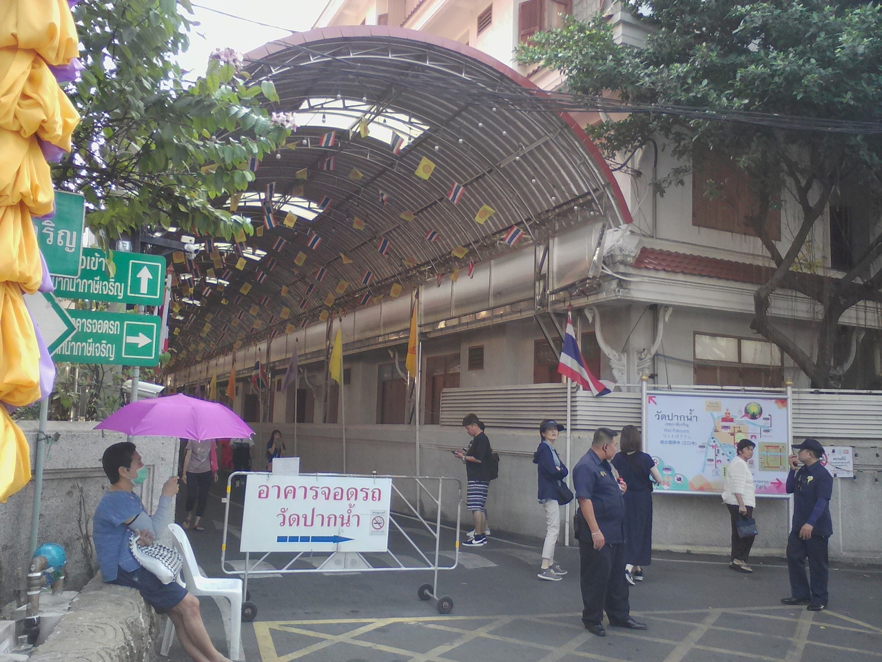 2019年12月31日の大晦日にバンコク市内からタクシーで行きました。観光客が多いのは予想していましたがそれにも増して多いのがタイ人の参拝客。外国人は“天井画”目当ての方がほとんどだと思いますが、タイ人の目的はお寺のお参りですから。天井画はおまけだと思います。タクシーで行くと大通りから入ったところから大渋滞。皆、寺の入口まで行き降りるのでその列です。タクシーの中で待つのならワットパークナム裏手にあるワットクンチャンまでタクシーで行き、そこから歩いたほうが全然早かったと思います。