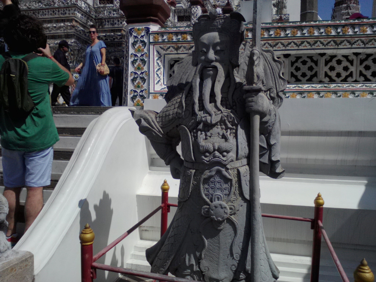ワットアルンに限らずワットポーやワットプラケオでも同じような中国風の石像を見ることができます。派手な装飾はなされておらずどれも“コンクリート色”…。言われるまでは特に気になりませんでしたが、そうと言われるとカラフルなタイのお寺の中ではかなり違和感があり浮いています。不思議な存在です。