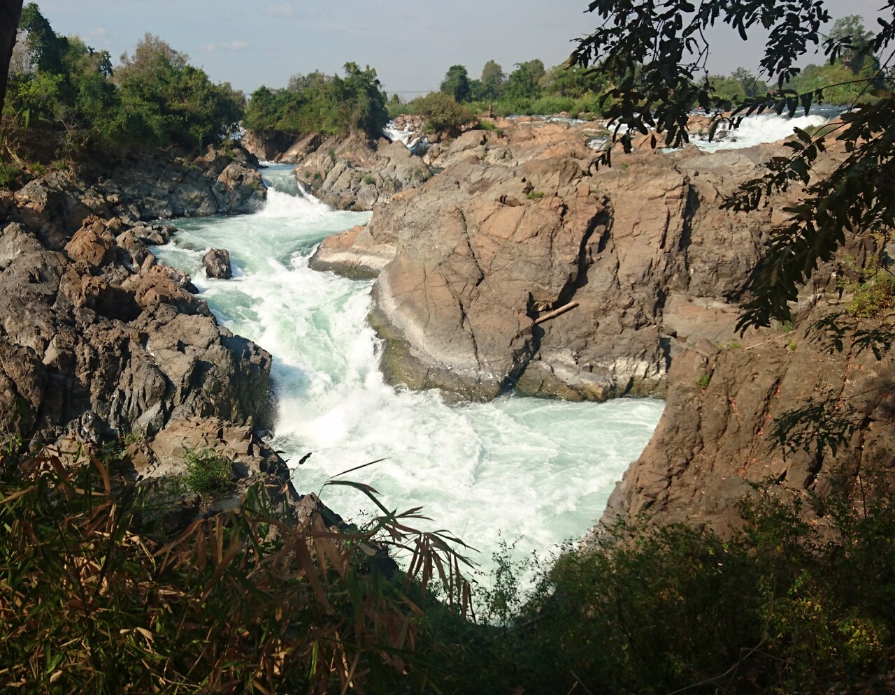 竹がまとまって生えている砂地を歩くと現れた。幅の広い岩がゴツゴツしている滝と言うより渓谷に近いイメージだった。見る場所により滝のように見えたりもした。水量が少ない時期との事だったが水も濁ってはなくキレイだった。