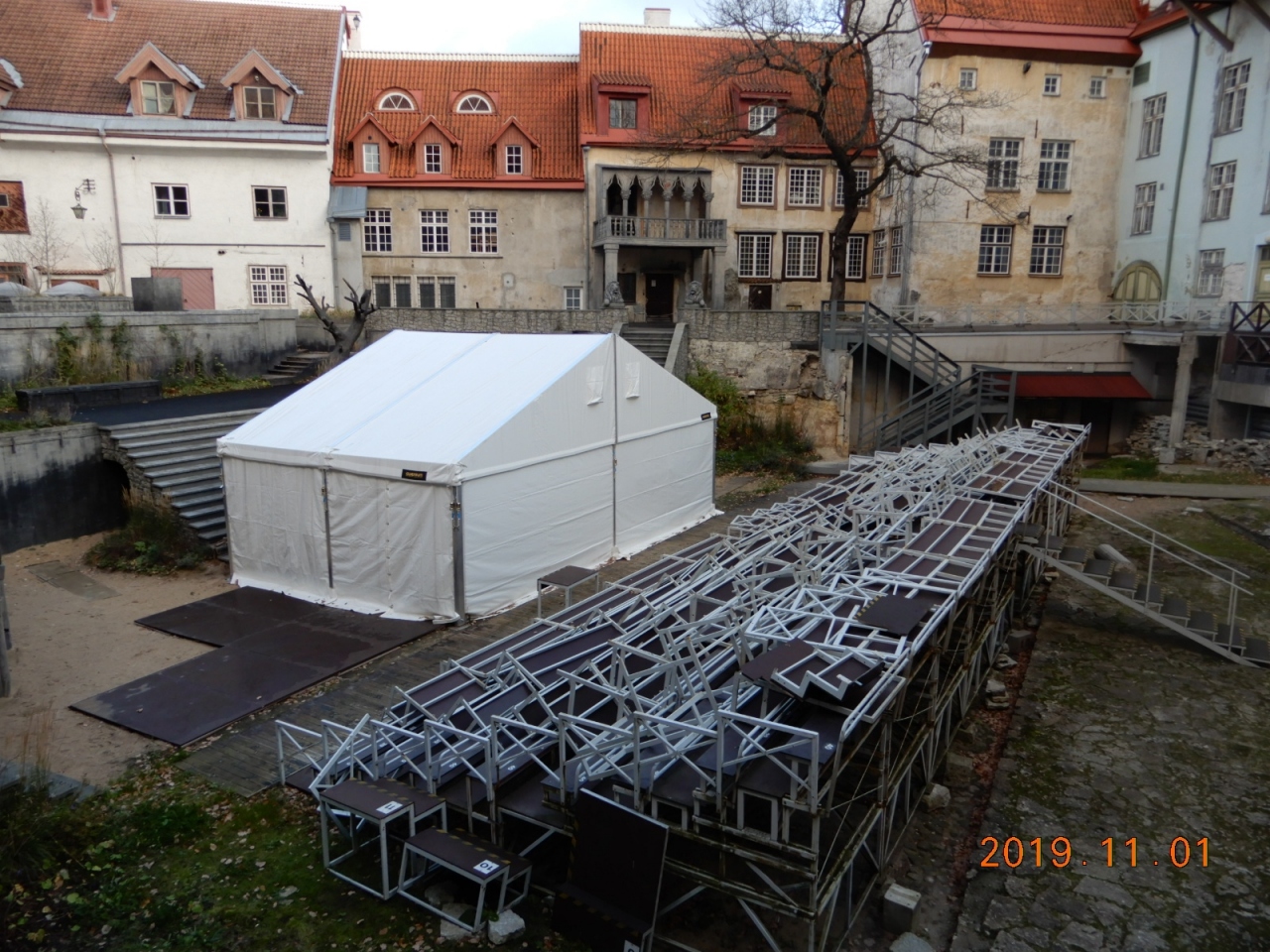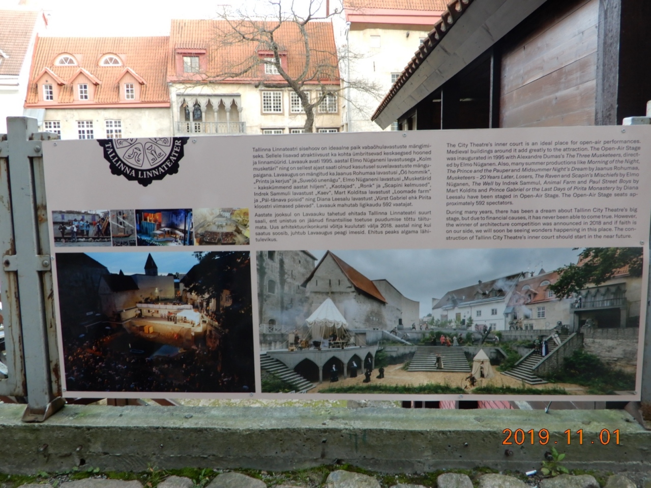 タリン市立劇場を訪れた際は正面だけでなく裏道から見ることをお勧めします。案内板には当時の様子を再現した写真もあります。
