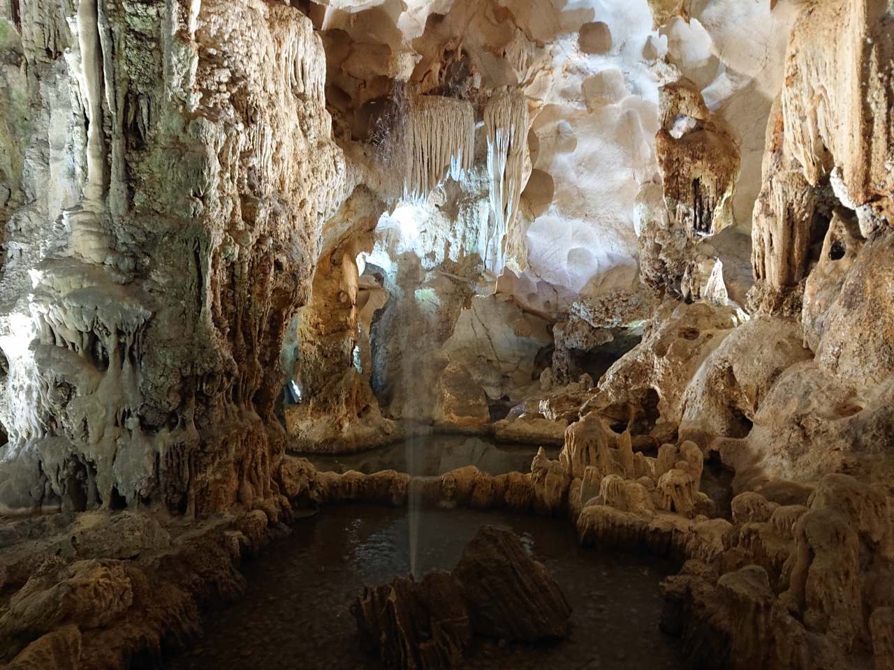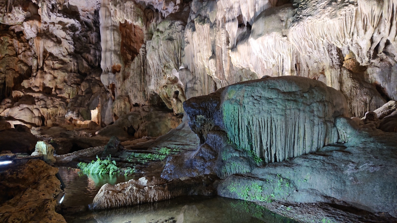 ハロン湾周遊(3時間ほどのコンパクトコース)の途中で船を降りて、見学しました。港には多くの船が停泊しており、ハロン湾では必ず訪れるスポットなんだろなと感じさせました。以前はカラフルな色の照明で照らされていたという鍾乳洞は、出来るだけ自然な形で見てもらうためにと、今ではカラー照明は使われなくなったそうです。自然の造形物に圧倒されました。アップダウンがあるので、歩きやすい靴と多少の体力が必要です。