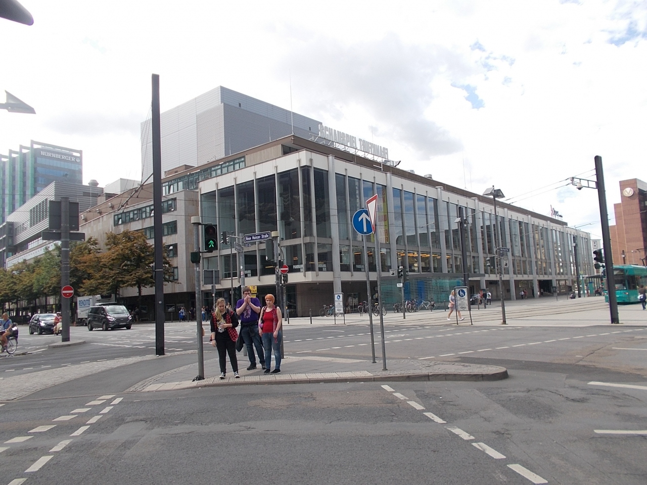 このフランクフルト歌劇場は旧市街地の西側にあります。かつての城壁後の緑地帯の中にあります。ここはオペラハウスです。全面がガラス張りの近代的な建物です。周りの建物とは次元が違う姿です。オペラハウスが2つもあるフランクフルトの芸術への関心度が感じられます。