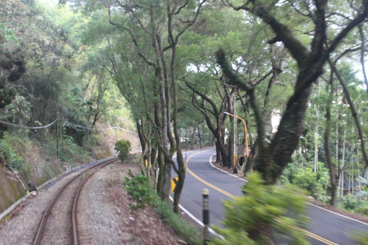 集集線に乗り、2つ目の駅・濁水駅から龍泉駅すぎにかけては、道路と並走しつつ、並木の中を走っていく場所があります。