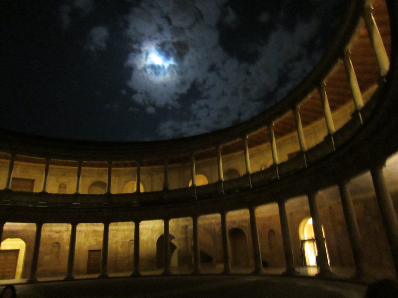 ナスル宮殿のすぐ近くにあるので、合わせて見学しました。円形の建物で柱ごしに中庭が見えます。中庭にも入れます。柱が印象的な建物でした。月明かりに照らされて幻想的な雰囲気でした。宮殿というよりは円形劇場のような感じがしました。