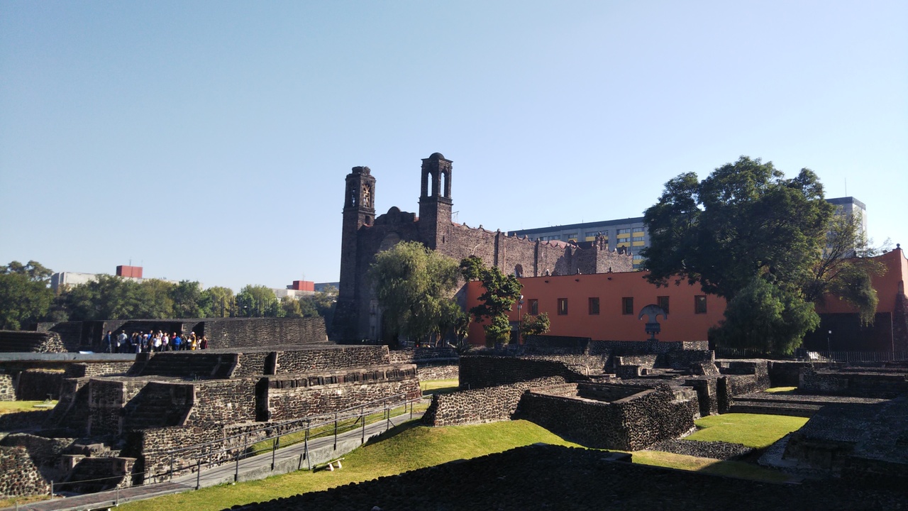 テオティワカン遺跡ツアーの途中で、この三文化広場/トラテロルコ遺跡に寄りました。車がたくさん通るような大きな通りの横に突如こんな歴史的な遺跡があるなんて少し驚きました。ツアーでは、ガイドさんが英語で長々と歴史的な背景を説明してくれました。