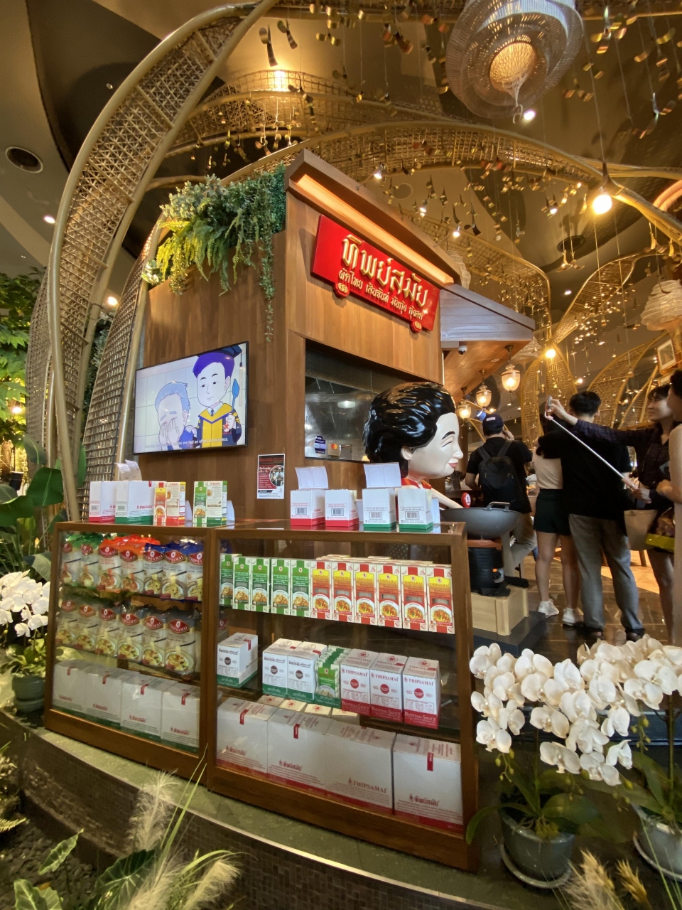 オレンジジュースが90バーツ、140バーツのサイズ。これが美味、値段が張るのも納得。房ごと出てくることがある。パッタイもおいしい、ついてる生野菜は全部おいしい。待っている間はお店の由来がアニメになっているのでじっくりみてあげてください。エビの豪華なシーフードパッタイがおすすめです。ちょっとスパイシーかも。
