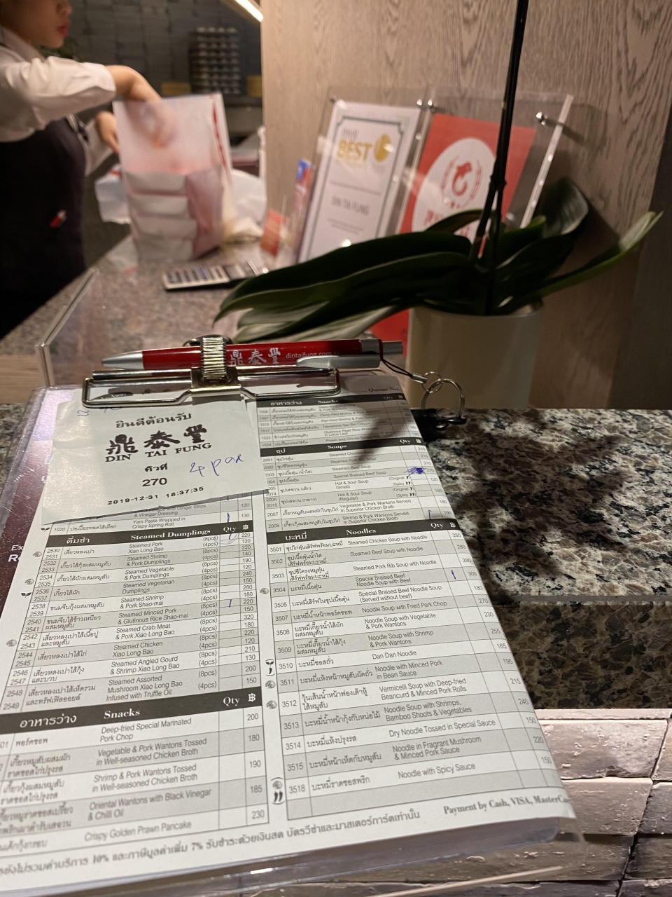 HK, SG, TK, TWのつぎはBKKのDTFも制覇。安定のおいしさ。大晦日だからどこもすごい行列だが、ここは30人待ちでも1時間ちょっとで入れた。だいぶ待つので、その間にメニューをじっくりみて選ぶことも可能。デザートは最後に出してくれるのですが、いくら待っても来なくて申し訳ないがそれだけキャンセルさせてもらった。