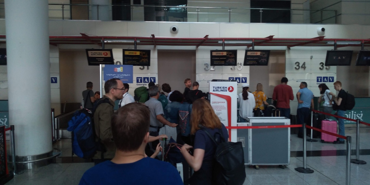 2階の出発ロビーには、カフェやジョージア料理の店もありますが、
