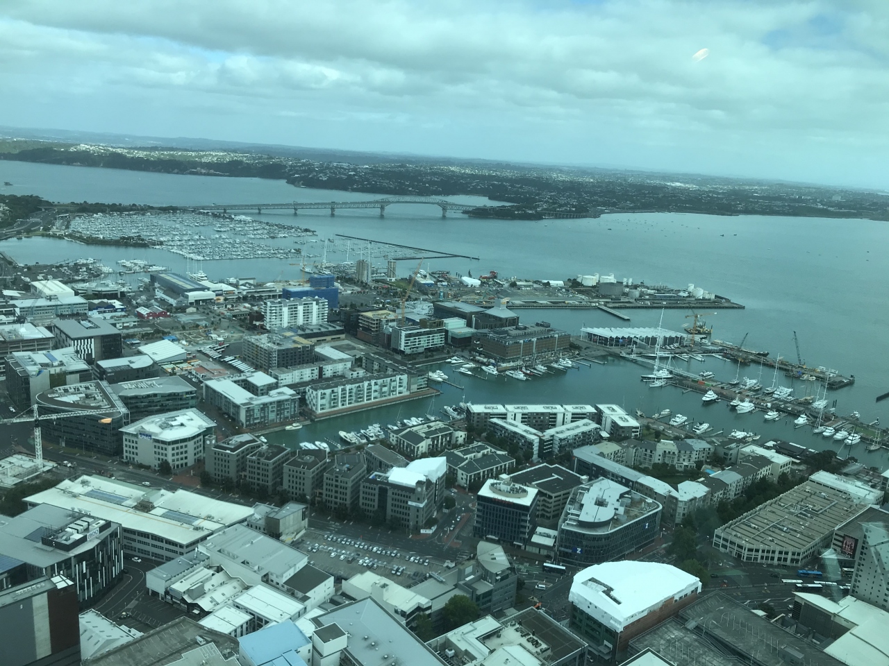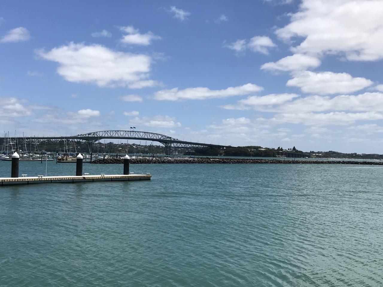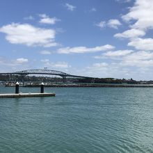 ウィンヤードクオーターから見ると、ハーバーブリッジ全体がよく見えてお勧めです。橋の中央にはニュージーランド国旗がたなびいていました。