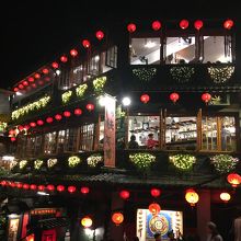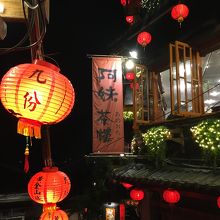 阿妹茶楼前の階段は、激込みで、降り始めるのに30分以上並びました。それでも、提灯の灯った景色が写真に撮れたので良かったです。