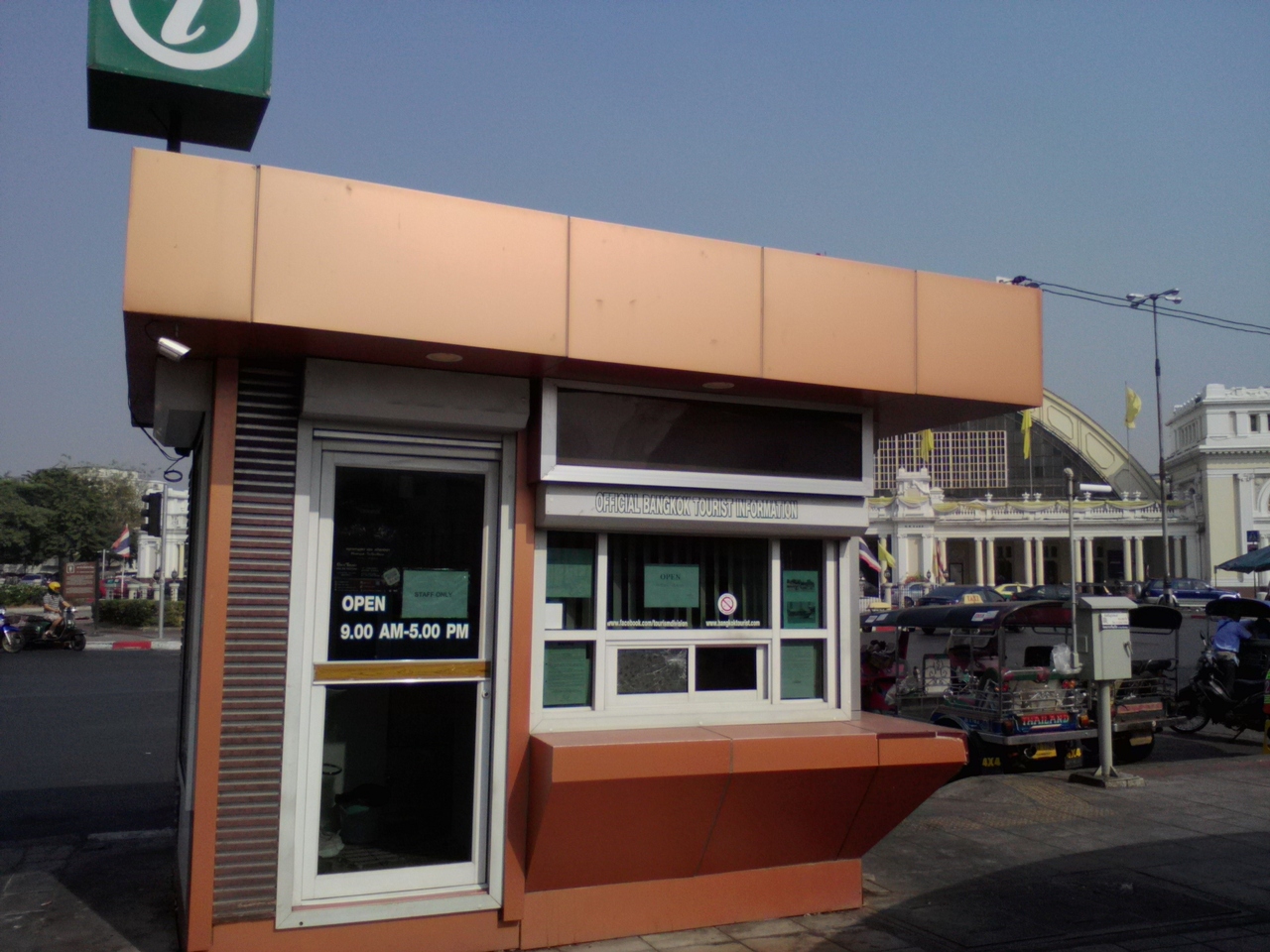 ファランポーン駅を利用しましたので今回も駅前にあるツーリストインフォメーションを覗いておきました。もはや“仕事化”しつつあります。中に人気があったので覗いてみたら窓がオープン。日本人?と尋ねられたので、はいと答えるとすかさず日本語のバンコクをマップを差し出されました。もうバンコクを去る時で必要なかったので丁重に辞退しましたが、バンコクに到着した時に立ち寄っていれば…との痛恨の念を抱いた次第です。あまり訪問者がおらず寂しそうでしたので皆さんもっと利用してあげて下さい。