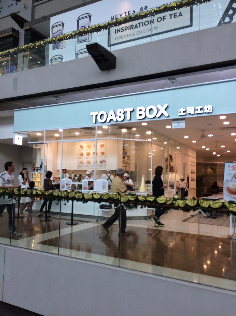 白い帽子に白いTシャツ、エプロンをして元気なスタッフがたくさんいました。店内も白でまとめられていて、すっきり清潔感がありました。主にパンを扱ったお店で、トーストを利用したメニューがたくさんあります。一番珍しいのはカヤトーストでした。