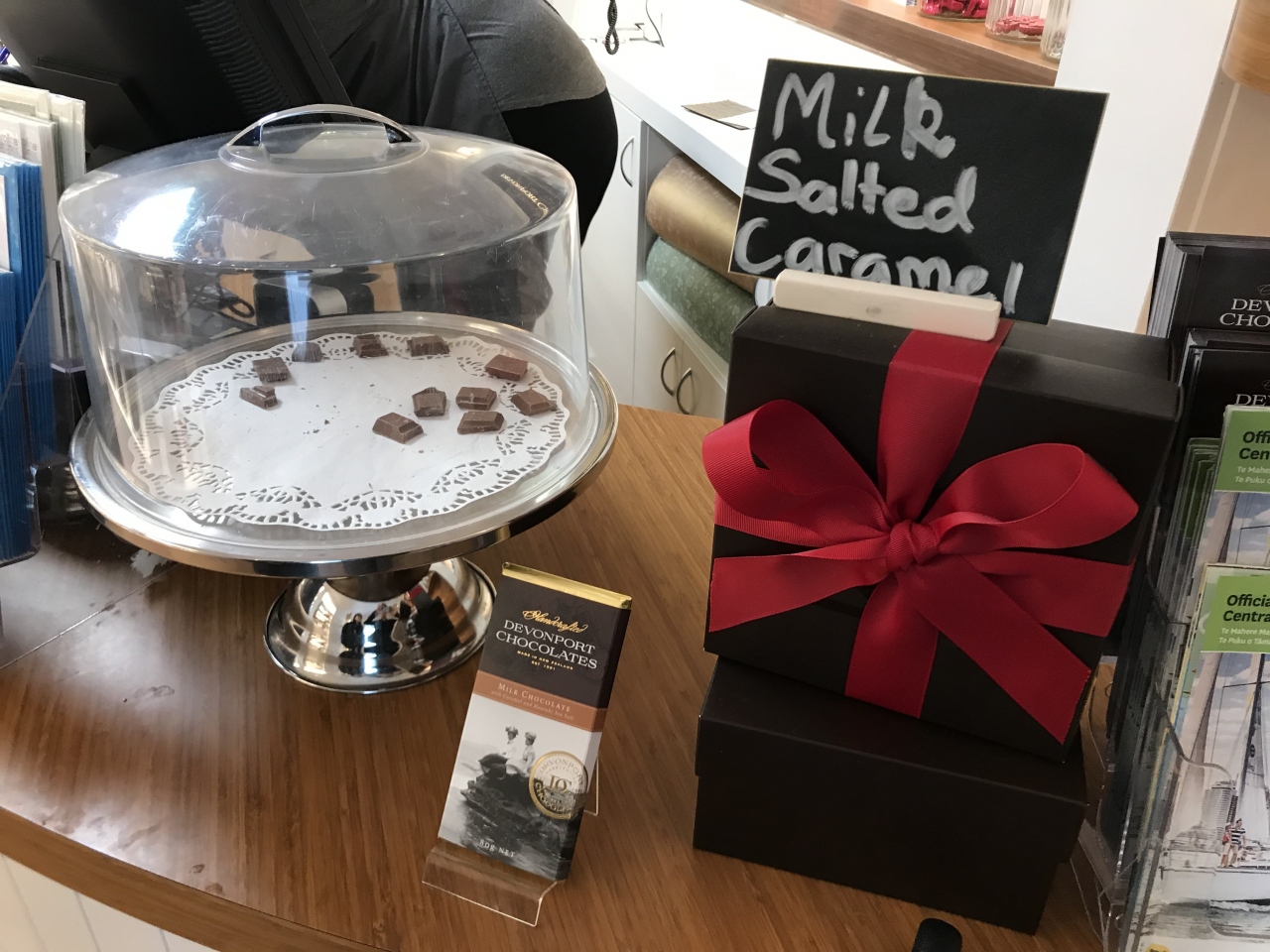 フェリーターミナル近くにありアクセスは良かったです。ショーケースに入った手の込んだチョコレートからチョコレートバーまで取り扱っています。クリスマスのシーズン商品もありました。価格帯は高級でチョコレートバーも1,000円程度します。チョコレートバーは包装紙も可愛らしくてお土産にも良かったです。