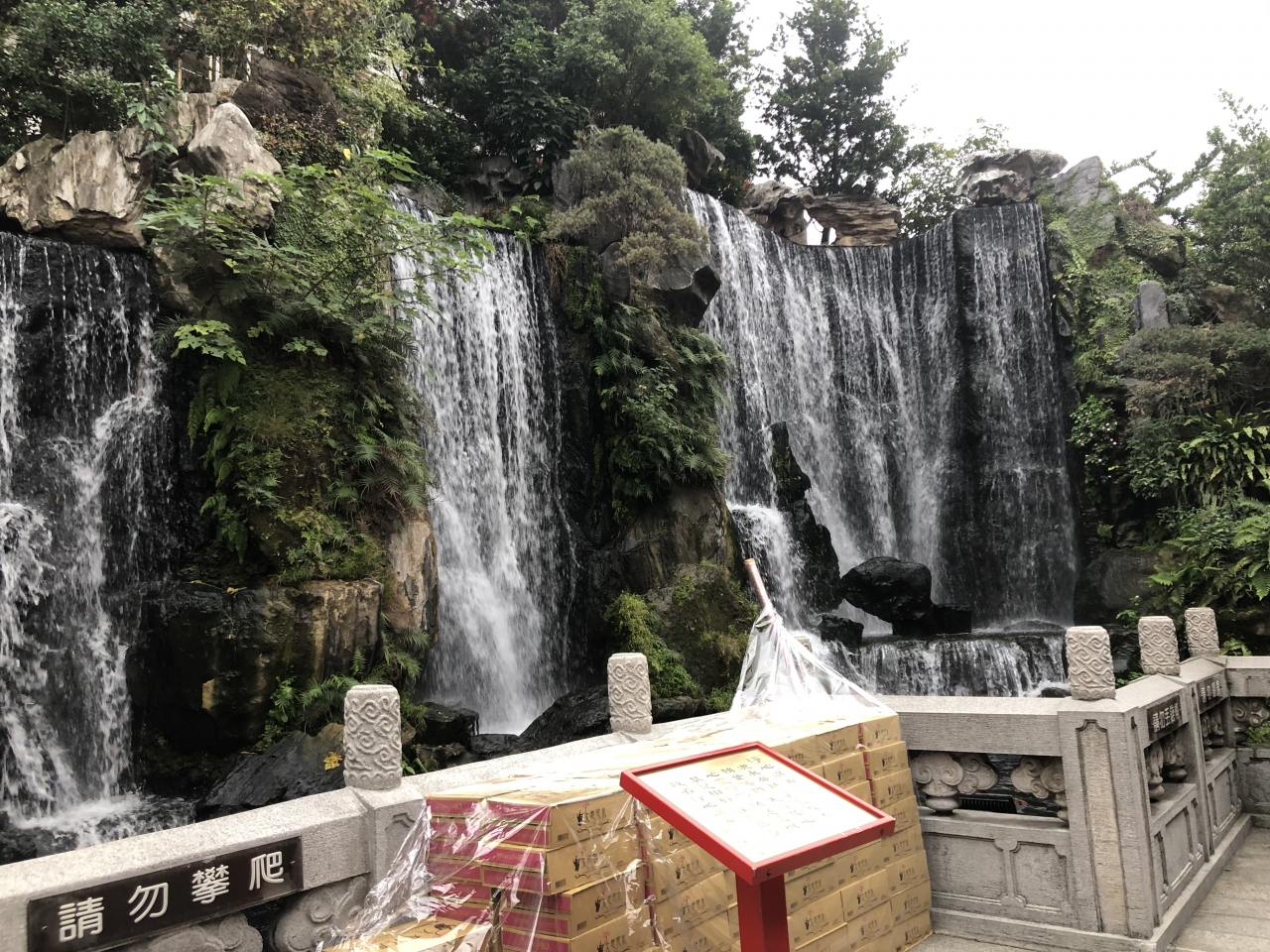 龍山寺の入場門を入って右手に滝があります。ガイドさんは人工の滝と教えてくれましたが、岩と木々と流れる水が見事に調和していて、山間部にある滝の様でした。流れは三筋で、水量は少なめです。台北有数の観光地龍山寺は、マイナスイオンたっぷりのパワースポットでした。