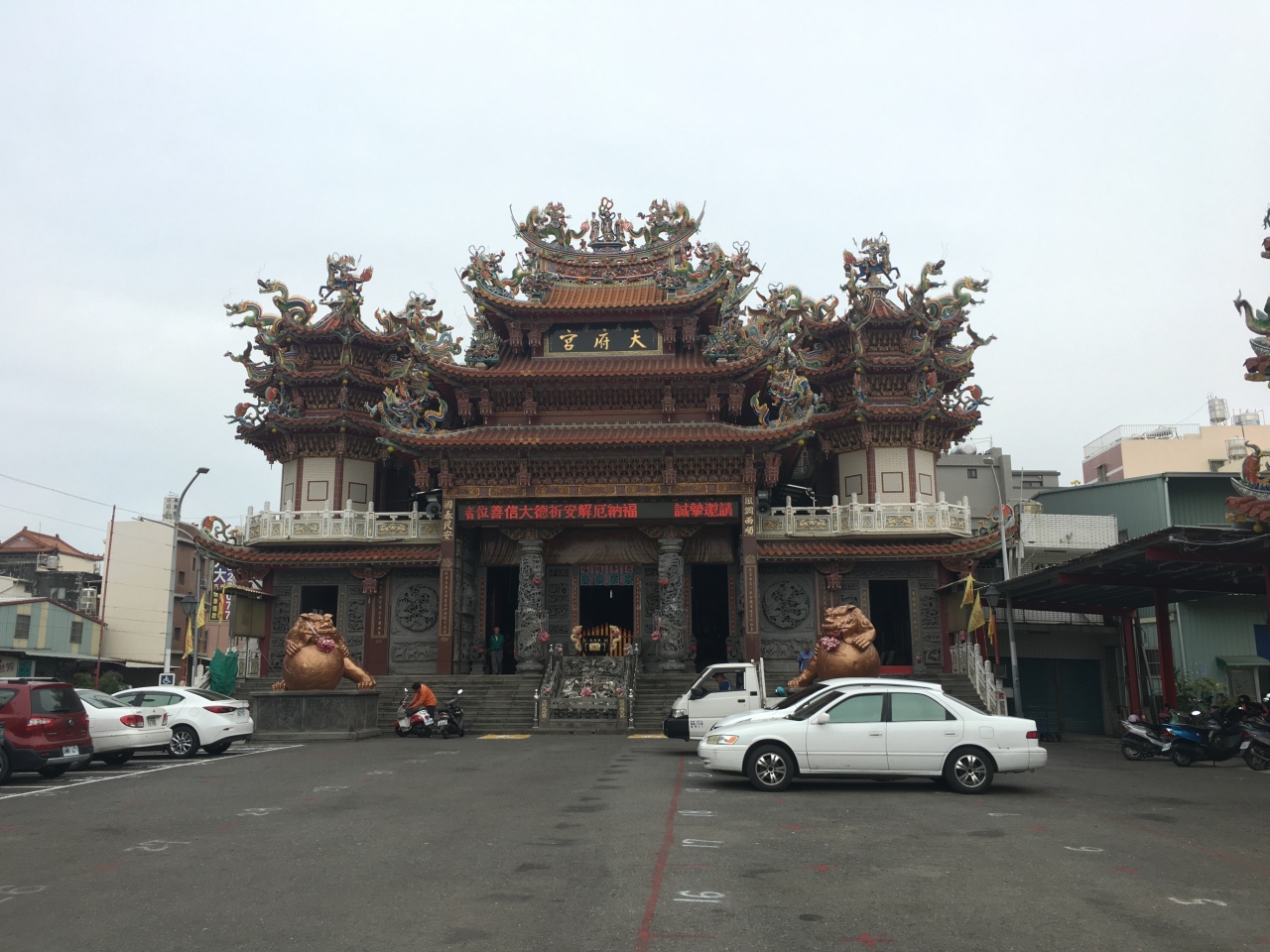 蓮池譚の北側にある寺院で孔子廊から虎龍塔方面に向かうとすぐにあります。派手な寺院だと思いふらりと立ち寄りました。まず目についたのは巨大な狛犬。大きな玉を抱えていて、ふとももが太すぎ!そんなところに突っ込みをいれつつ内部にはなぜかポップなキャラがいたりとカオス(笑)普通にお参りして出てきましたが、なかなか楽しい寺院でした。