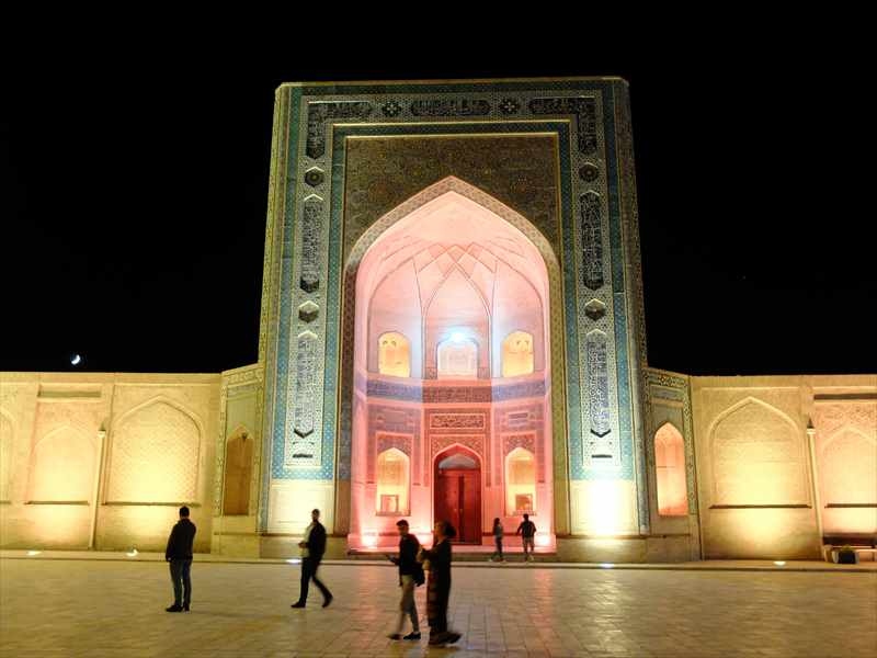 このモスクも、カラーン・ミナレットやお向かいのミル・アラブ・メドレセ同様に夜にはライトアップされます。