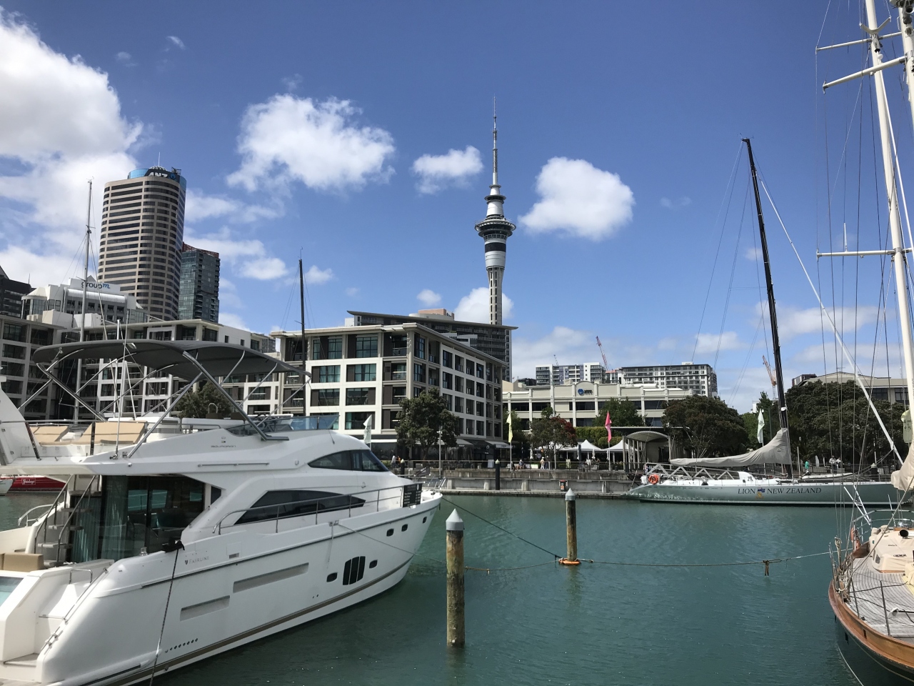 フェリーターミナルから少し歩いたところに広がる海沿いの眺めの良い場所です。ヨットがたくさん停泊していて、オークランドが「帆の街」と呼ばれることを実感できます。ここからは、スカイタワーも良い感じに見えて、絵になる風景でした。