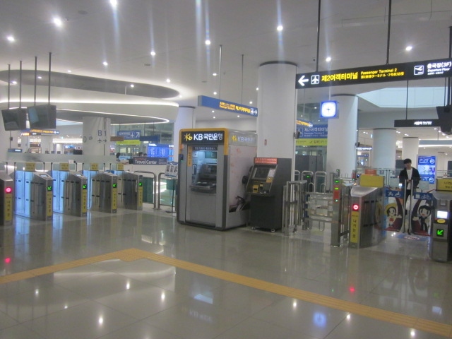 今回は、A'REXのICN第二ターミナル駅が開業して以降、初めて利用してみました。まず驚いたのは、こちらがA'REXの終点駅となりますが、既存の第一ターミナル駅からこの駅までの所要時間が案外長い(10分近くかかったように思いました)ことです。イマイチ、T1とT2の位置関係を把握していなかったのですが、鉄道路線的にかなり迂回しているようです。勿論、A'REXを使ってターミナル移動もできますが、こちらは有料となってしまいます(900W)ので、無料のターミナル移動をご希望の方はターミナル間で運行されているバス利用となります。