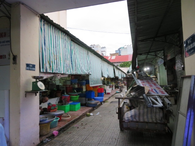 ベンタン市場にも食料品はもちろん売っていましたが、市場の外側に、果物や野菜など食べ物ばかり売っている通りがありました。ガレージのような場所に店舗を出していて、市場の中よりものんびりした雰囲気がしました。
