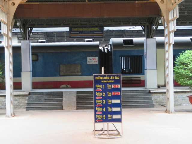 ベトナムの国鉄は、サイゴン駅が発着場所になります。カウンターに、出発時間が表示されたモニターがあってわかりやすいです。国鉄を利用する人が少ないのか、駅は人が案外少なかったです。構内には、ファーストフード店などもあるので、列車内で食べるものは、駅でも買えますよ。