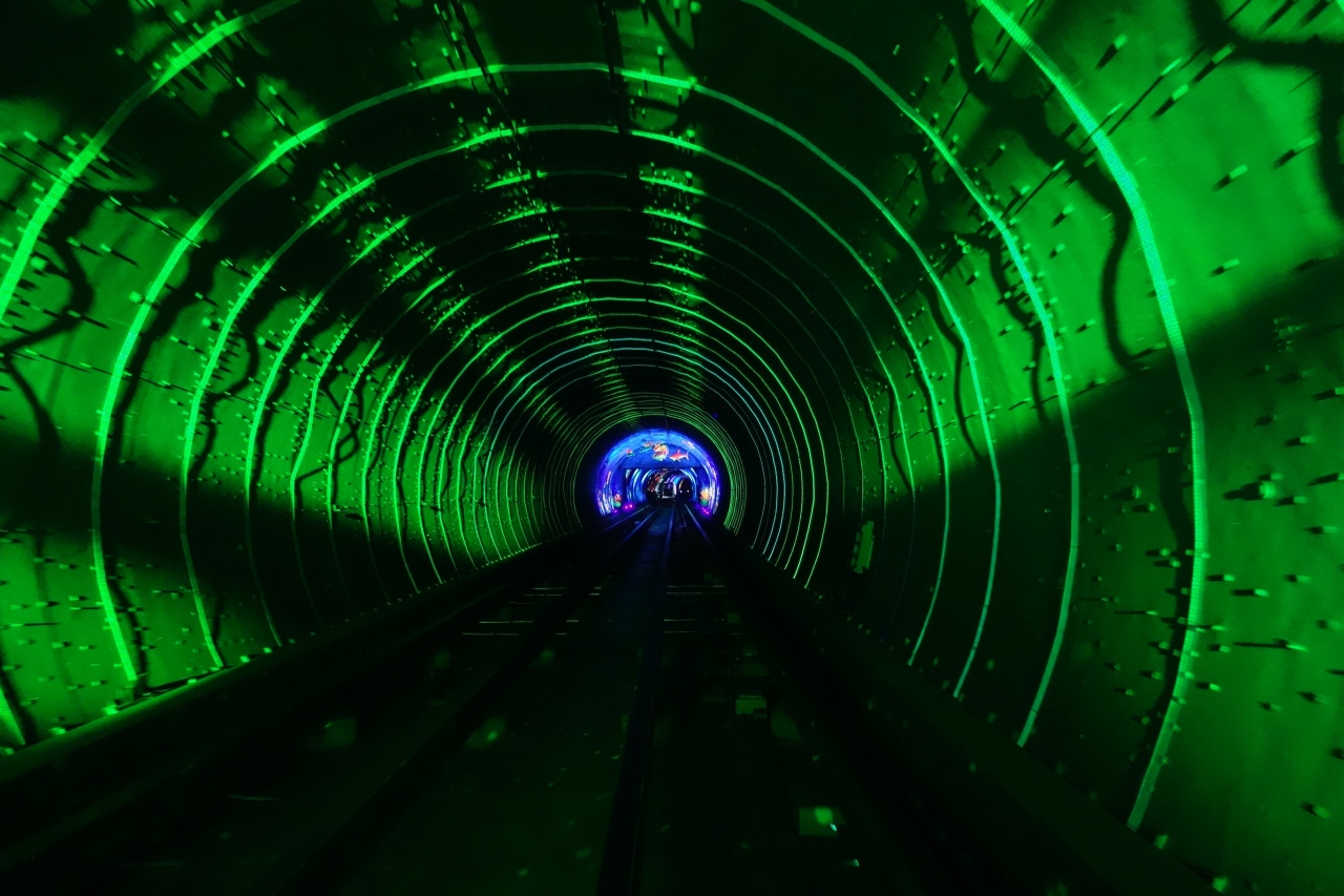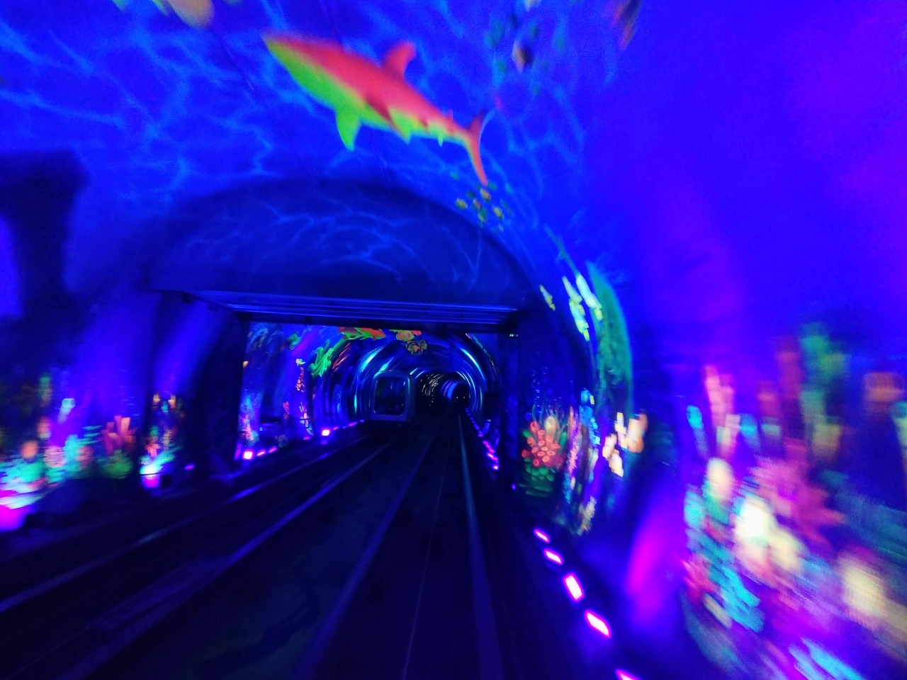 そんな中、こちらは河底のトンネルを電動トロリーで移動し、その間トンネル内で光の演出を楽しめるという物で、子供も喜びそう、と思い利用してみました。