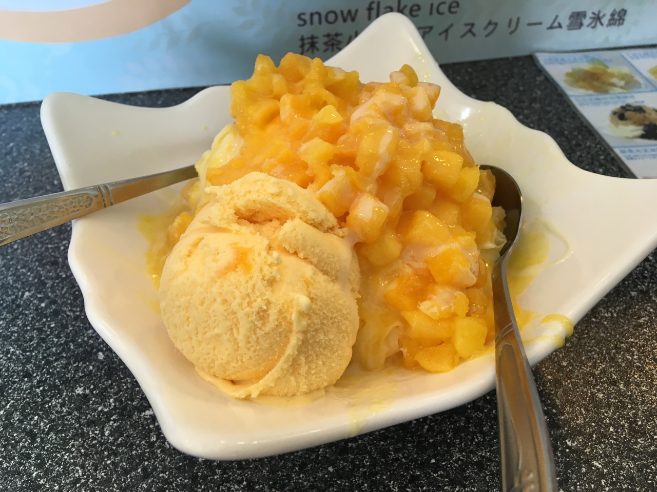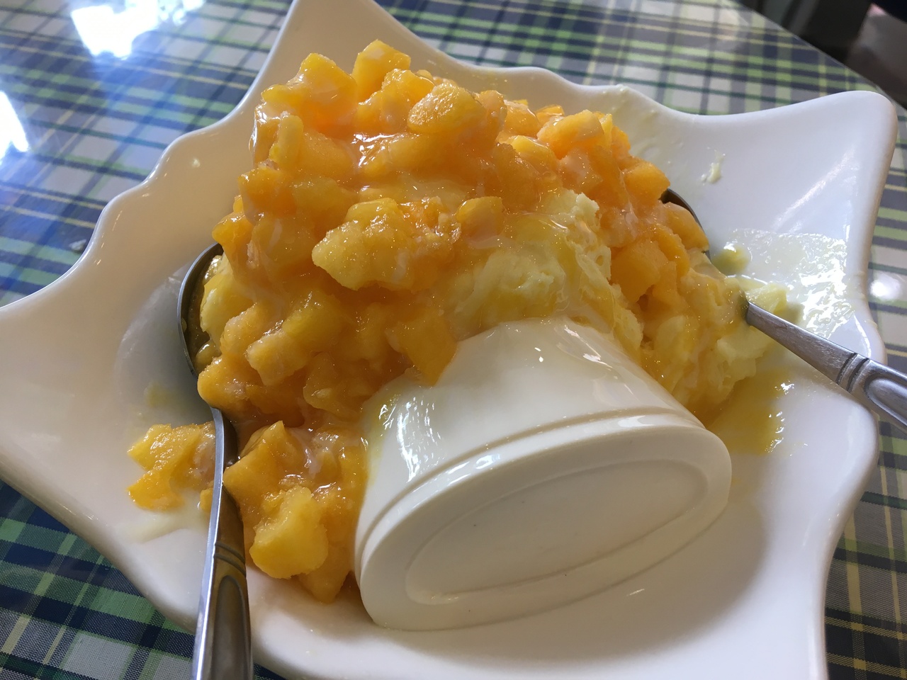 パンナコッタがのっているマンゴーかき氷とマンゴーアイスがのっているかき氷を頼みました。どちらもとても美味しかったです。