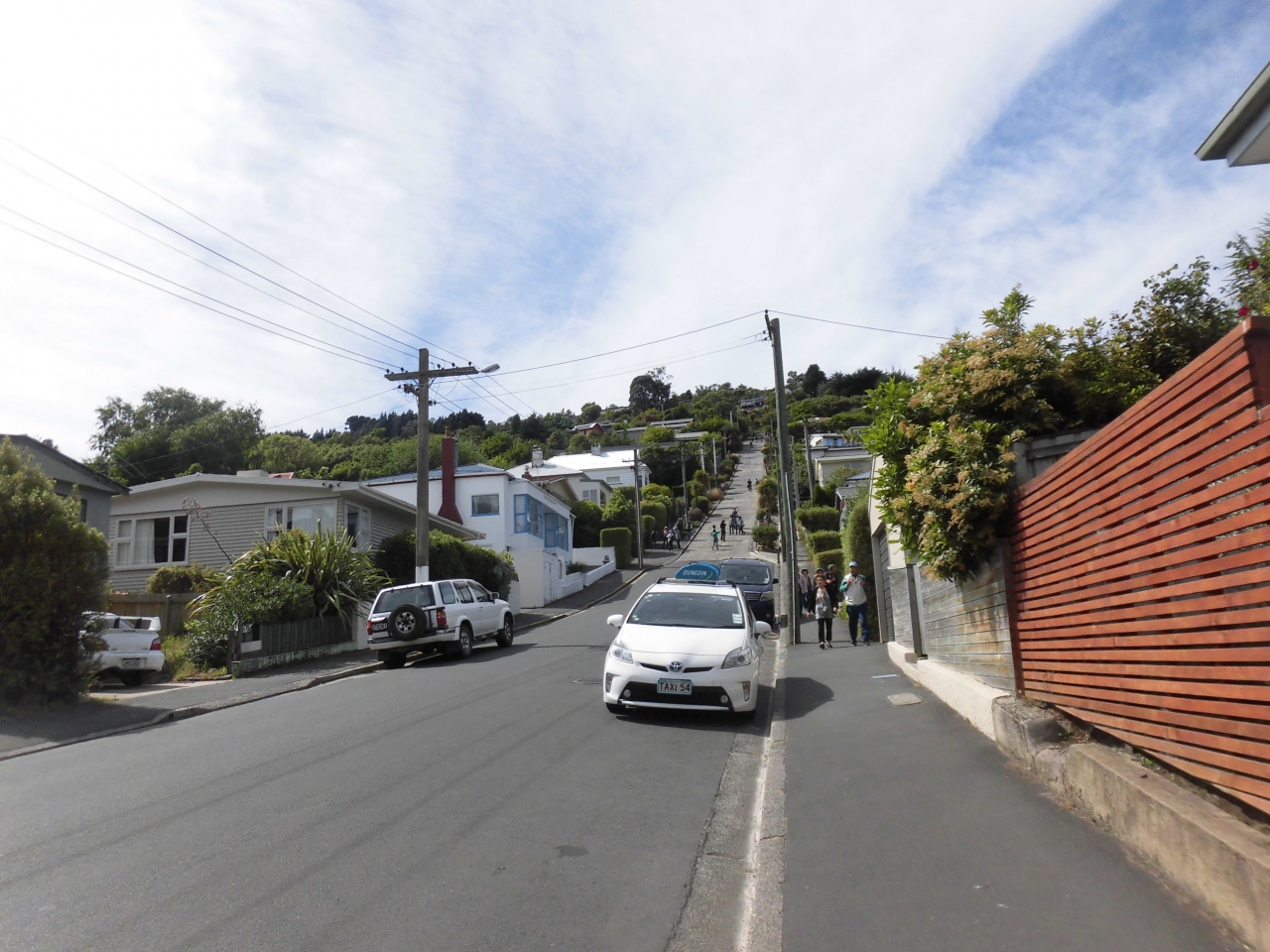 ダニーデン郊外の住宅地にある「世界一傾斜の急な街路」で
