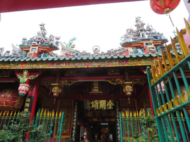 こちらのお寺は、屋根の装飾が必見です。チョロン地区のお寺は、どこも屋根の装飾が凝っているのですが、こちらは、塊でその雰囲気が、ヒンズー教の装飾とどことなく似ていて興味深いものでした。あと見逃しがちですが、壁絵も圧巻でした。