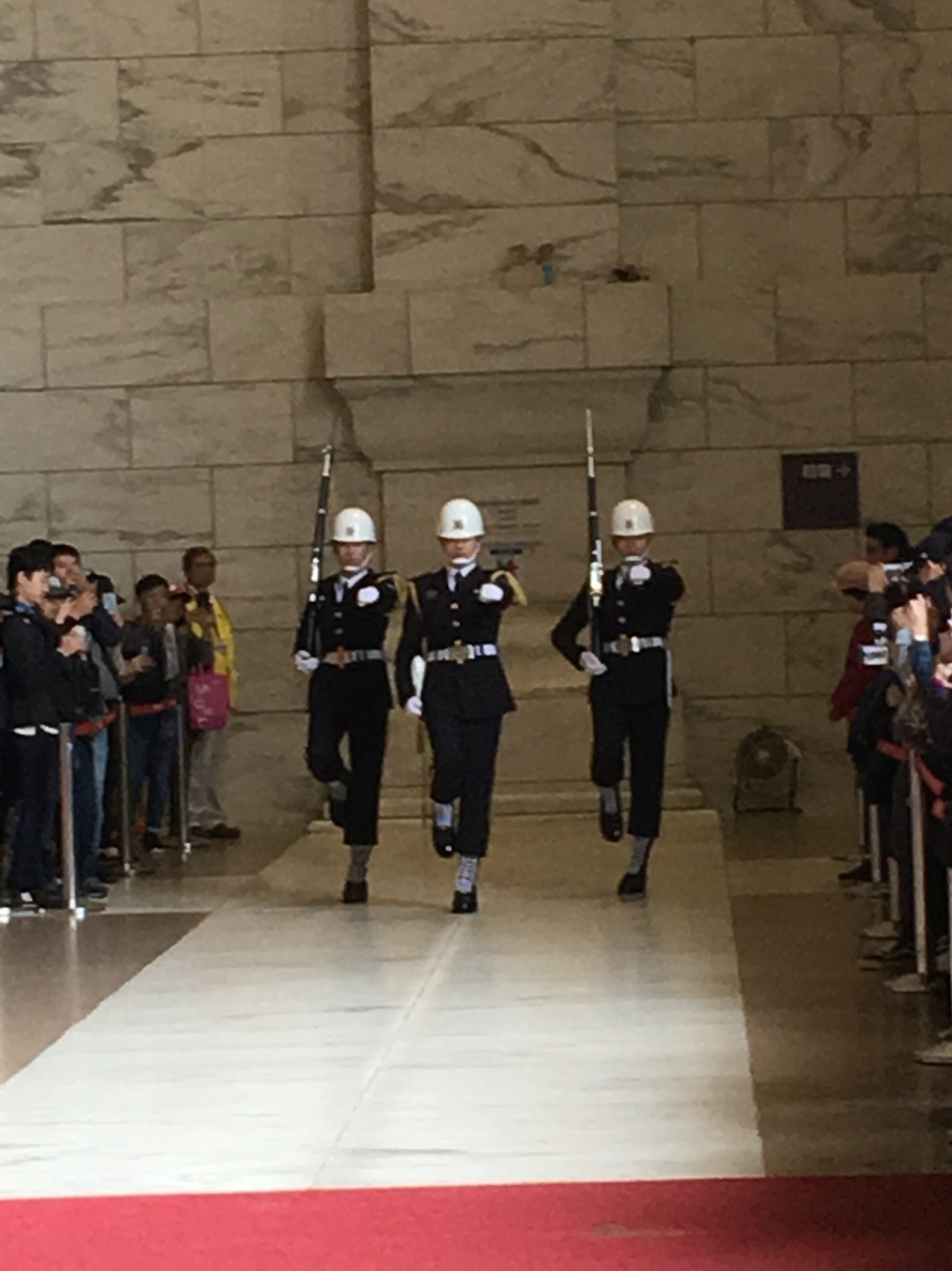 台北の中正紀念堂で行われる衛兵の交代儀式。1時間ごとに行われるのですが、まだ15分時間があるし~と思って、ミュージアムを見ていたら出遅れました。汗