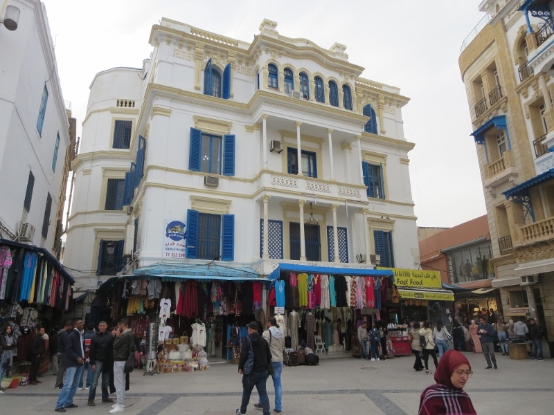 迷路のような旧市街のメディナを見物しながら抜けて着いた広場です。ツアーで行ったので、わかりやすいこの広場を集合場所にして、自由に散策することになりました。広場の前にはフランス門があり、その先は新市街でした。広場のそばには素敵なホテルとカフェがありました。