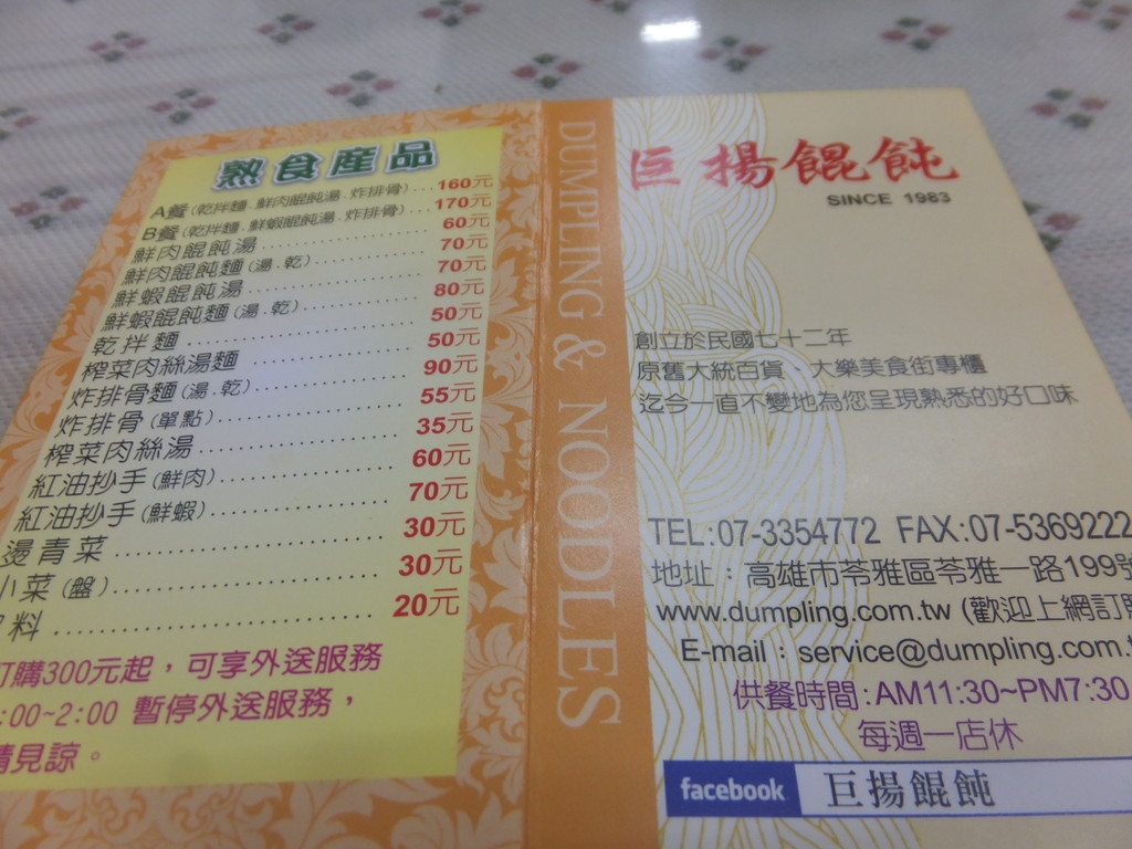 余り、お腹が空いていなかったので、ワンタン麺でなくワンタン(60元)にしました。