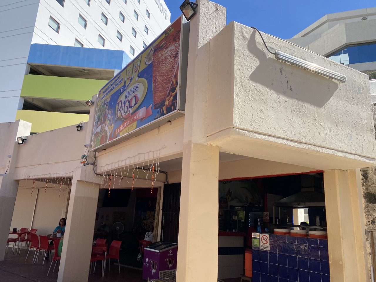 屋台の様なローカルな雰囲気で美味しいタコスが頂けます。肉の種類と部位によってメニューは15種類ほど。肉が驚くほど柔らかくて、玉ねぎとパクチーと良く合います。チーズ入りにすると美味しさ倍増。お値段もホテルゾーンではかなりリーズナブルでした。