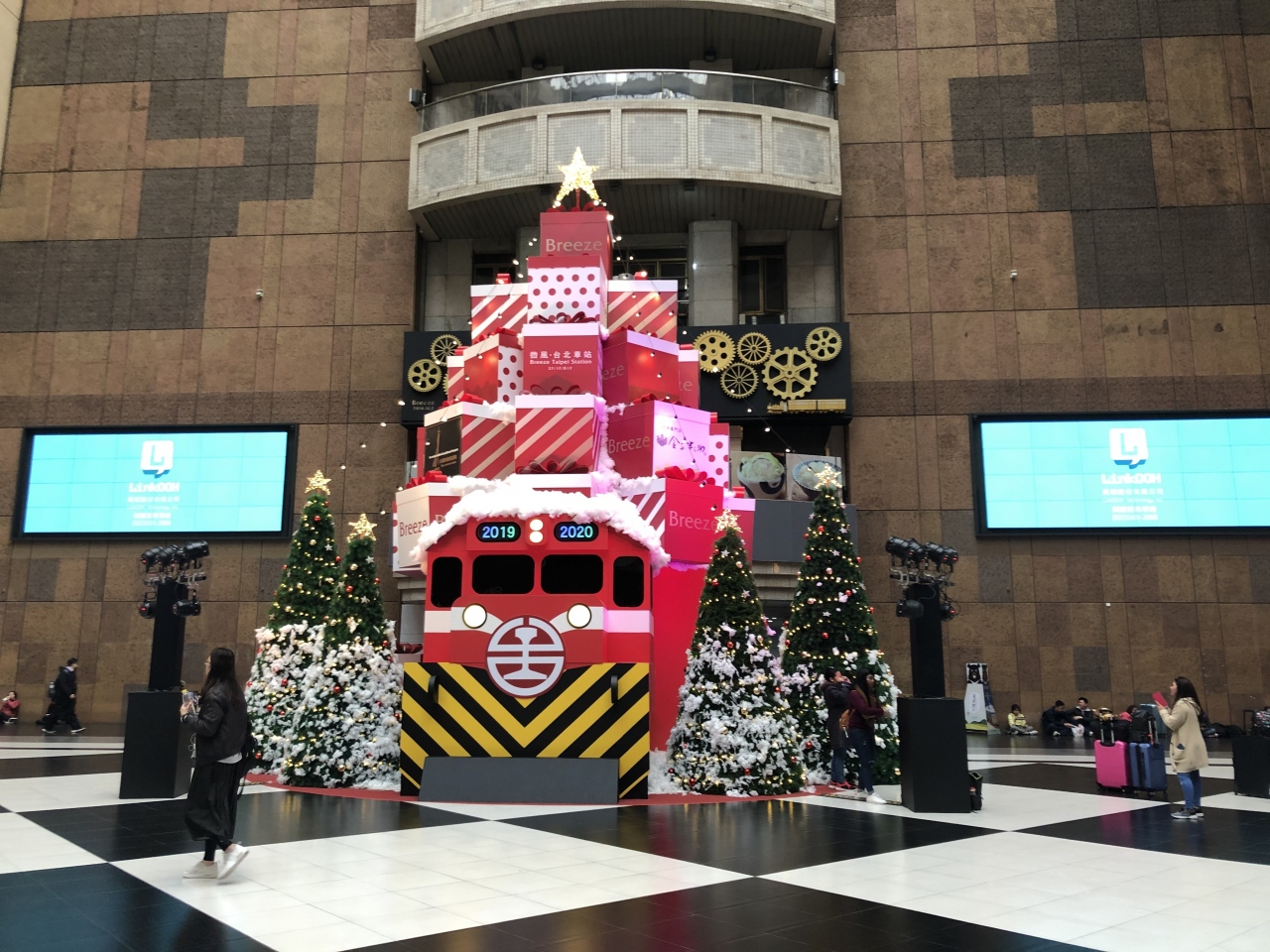 台北駅は巨大駅です。高速鉄道と国鉄と地下鉄の3つの路線の「台北駅」になっています。ビジネスで利用しましたが、大きすぎて台北在住の社員でも迷っていました。中央の大ホールは吹き抜けになっています。ちょうどクリスマスシーズンだったので、クリスマスの飾りつけがあって華やいでいました。