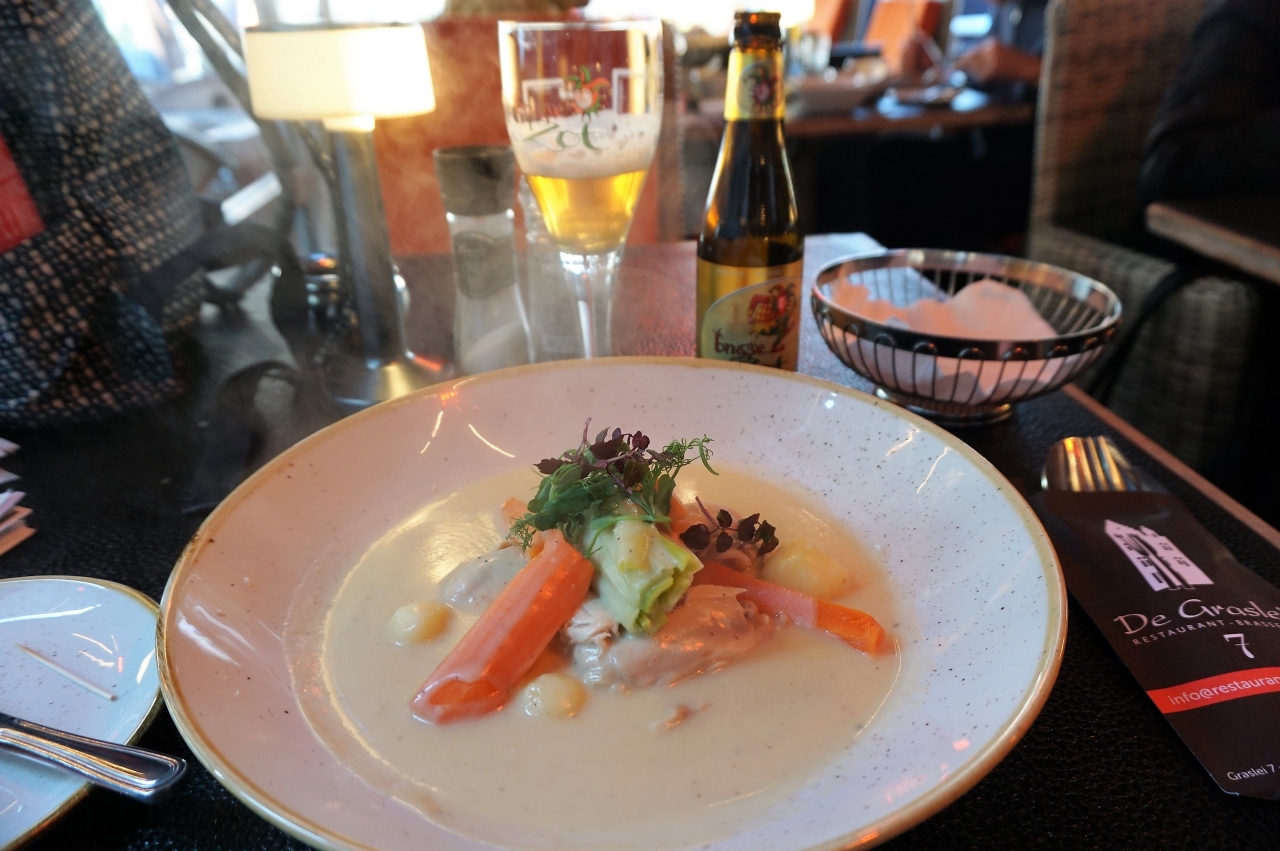 ゲント名物の「ワーテルゾーイ」というチキンクリームスープを食べたのですが、盛り付けが上品で、お味もマル。オススメのレストランです!