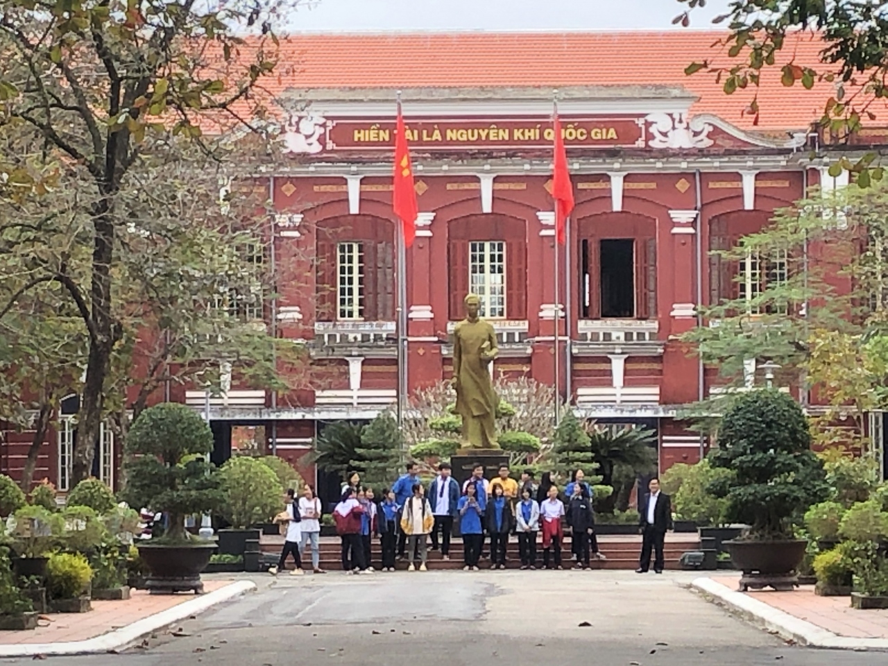 ツアーで訪問しました。ホーチミンさんの母校の高校です。現地ガイドさんの母校でもあるそうで、立入禁止なのですが、数m入り見学しました。昔は男子校だったけれど、今は共学だそうです。赤いレンガ造りの建物が点在していました。