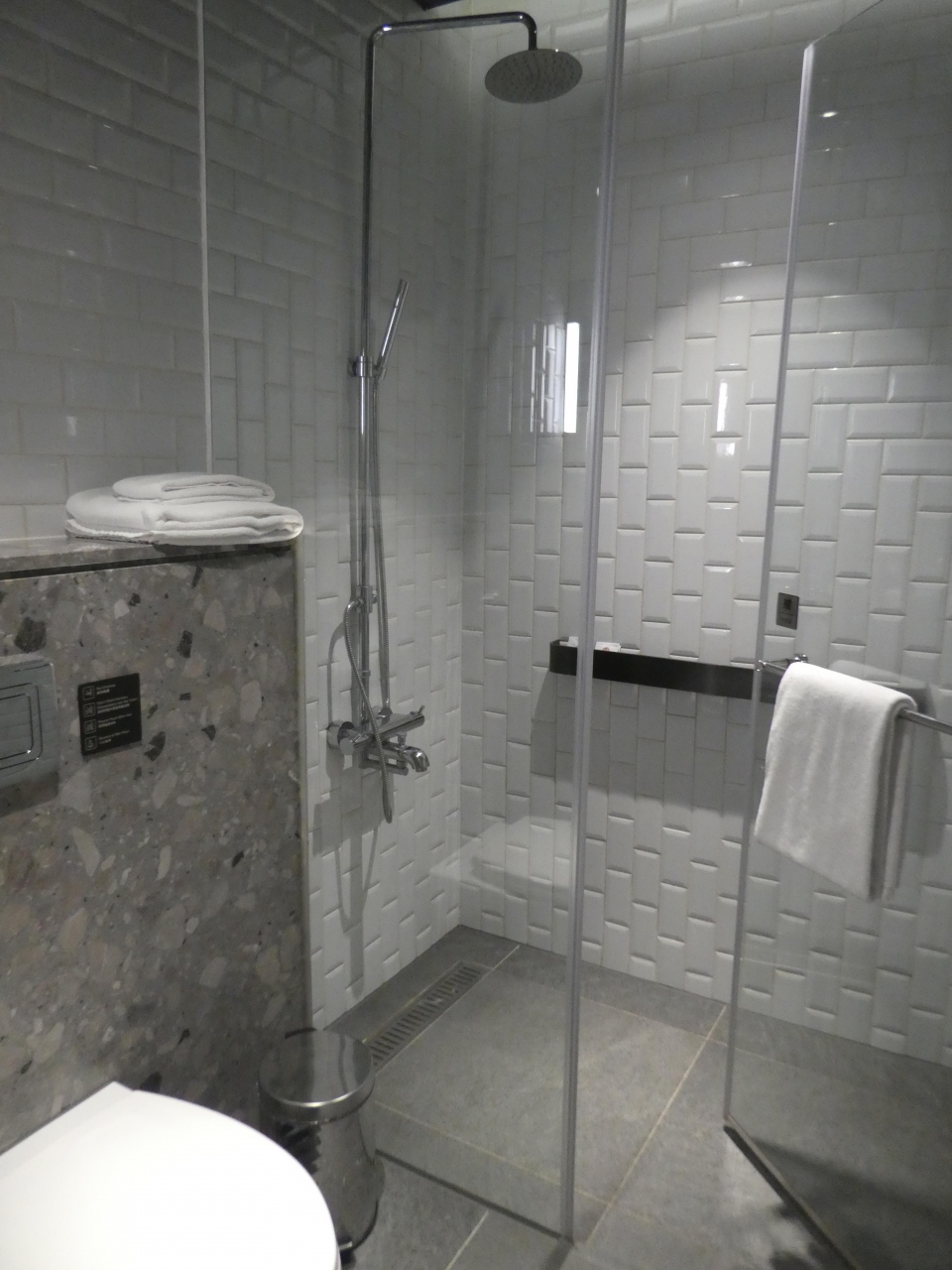 ざわざわしたラウンジの奥に、private resting area というのがありますが、それがトランジットホテルです。6時間滞在しました。小洒落たビジネスホテルといった感じですが、適度な広さがあり、シャワールームも清潔。荷物を広げるスペースもきちんとあります。廊下の雑音が気になったので、内扉をしっかり閉めて就寝。よく寝られました。窓からスカイトレインが眼下に見えます。ちなみにPlaza Premiumのラウンジはいくつかありますが、ホテルがあるラウンジは第2ターミナルです。