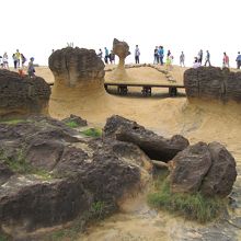 台北から路線バスで1時間30分くらいかかります。台湾の北の海岸で、浸食された海岸の岩が奇岩として巧妙な風景を創り出しています。台北に行かれた際は、現地ツアーなどを利用された方がおそらく楽だと思いますが、一度訪れてみられては如何でしょうか。クイーンズヘッド(女王の頭)が有名です。