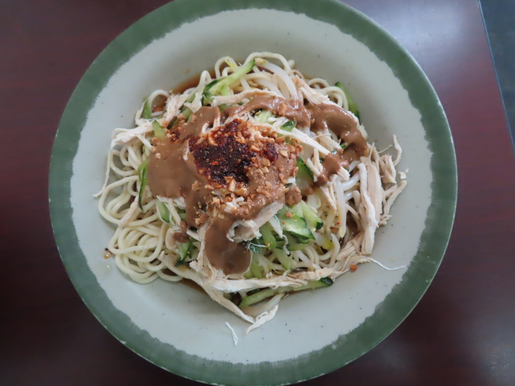 いただきました。麺はシコシコして美味かった。日本の味噌ダレ冷やし中華に似ていました。