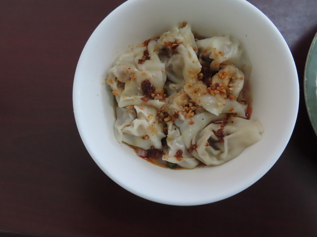 昼食は、この店のお薦めの雛絲涼麺と紅油抄手(抄手はワンタンという事で辛い雲呑)を