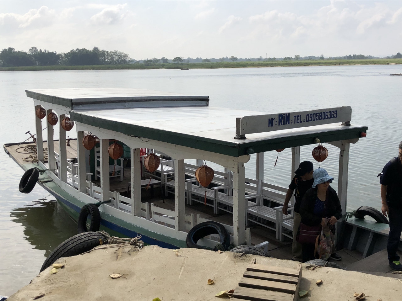 オプショナルツアーでホイアンから小舟に乗り、タンハ村へ行きました。船着き場まではバス。そして20人乗りくらいの小舟に。船頭さんは一人。途中砂を乗せた船ともすれ違いました。ヤシの木が並ぶ川岸を見ながら、のんびりとミニクルーズを楽しみました。