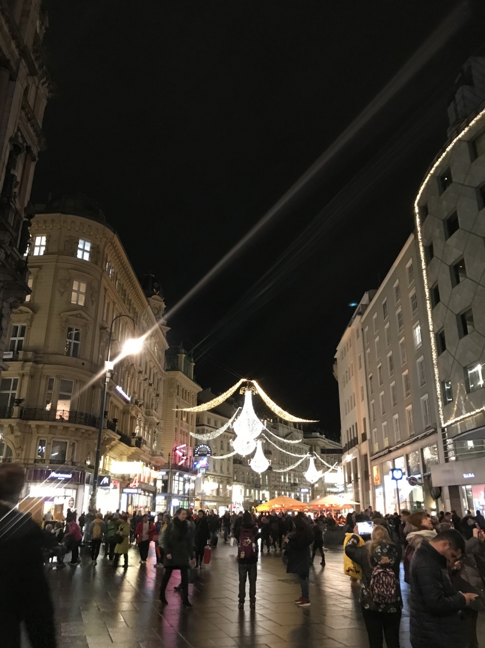 国立オペラ座からシュテファン寺院までがケルントナー通り。この通りを中心にハプスブルク帝国の頃のさまざまな遺産が残っていて世界遺産に登録されている旧市街である。歩行者天国になっているこの通りの両側には当時の素晴らしい建物がずらりと並んでいる。当時の最高建築技術を極めた建築は6階、7階建!など想像以上に高い。