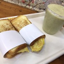 相変わらずフワフワなトーストとバナナキュウイジュースを飲みました。