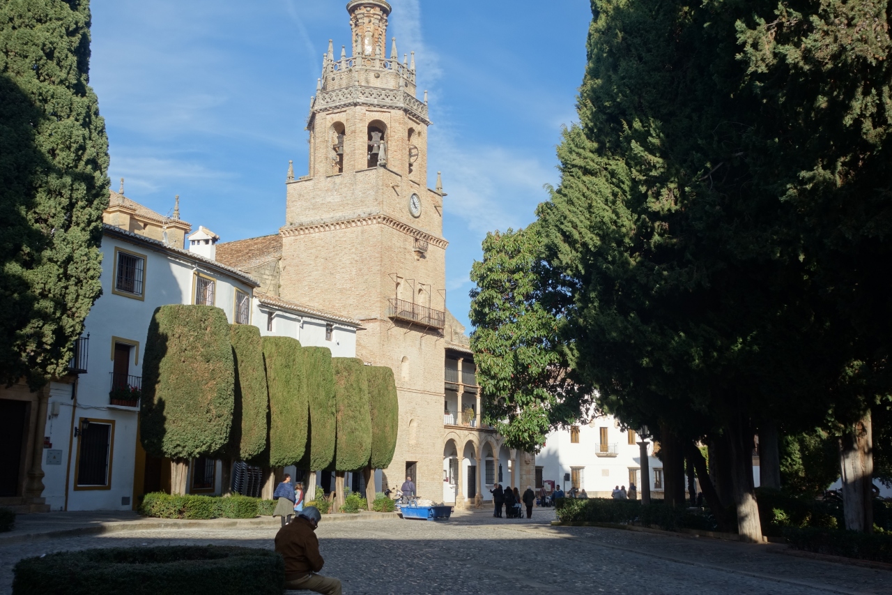 元々はモスクだった場所に,レコンキスタ後,ムデハル様式の教会を建築したもの。教会部分の屋上からは尖塔と,ロンダの町(ヌエボ橋は見えない)を見下ろすことが出来る。内部には守護聖人や聖遺品を含め貴重な展示があるが,営業時間中,観光客はほとんど見なかった。