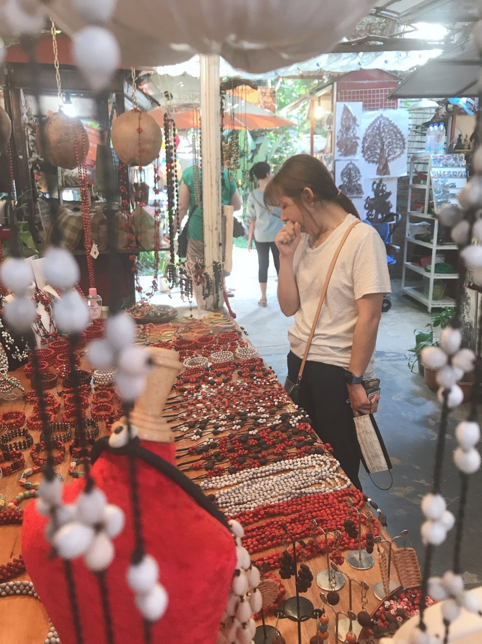 メイドインカンボジアマーケット側は、屋台形態の店の作りで、手作り感たっぷりのカバンや服もあり、お土産として若干購入しました。
