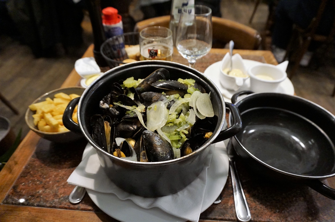 小エビのコロッケ(16.9ユーロ)、ムール貝のパセリとニンニクの白ワイン蒸し(27ユーロ)を注文。店員さんの対応がイマイチで、好感が持てませんでした。