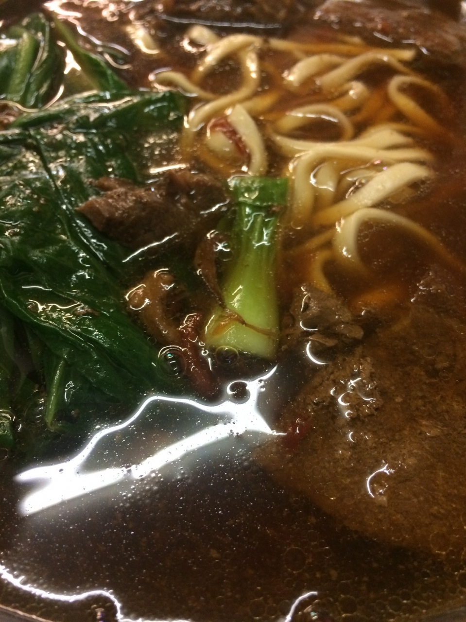 ローカル食堂で結構つめて座ります。かばんを置く椅子はないので、足もとか自分の膝の上において、食べました。牛肉がほろほろでおいしかったです。SとLでサイズが選べました。麺も手作り感があり、ぷりぷりでおいしかったです。